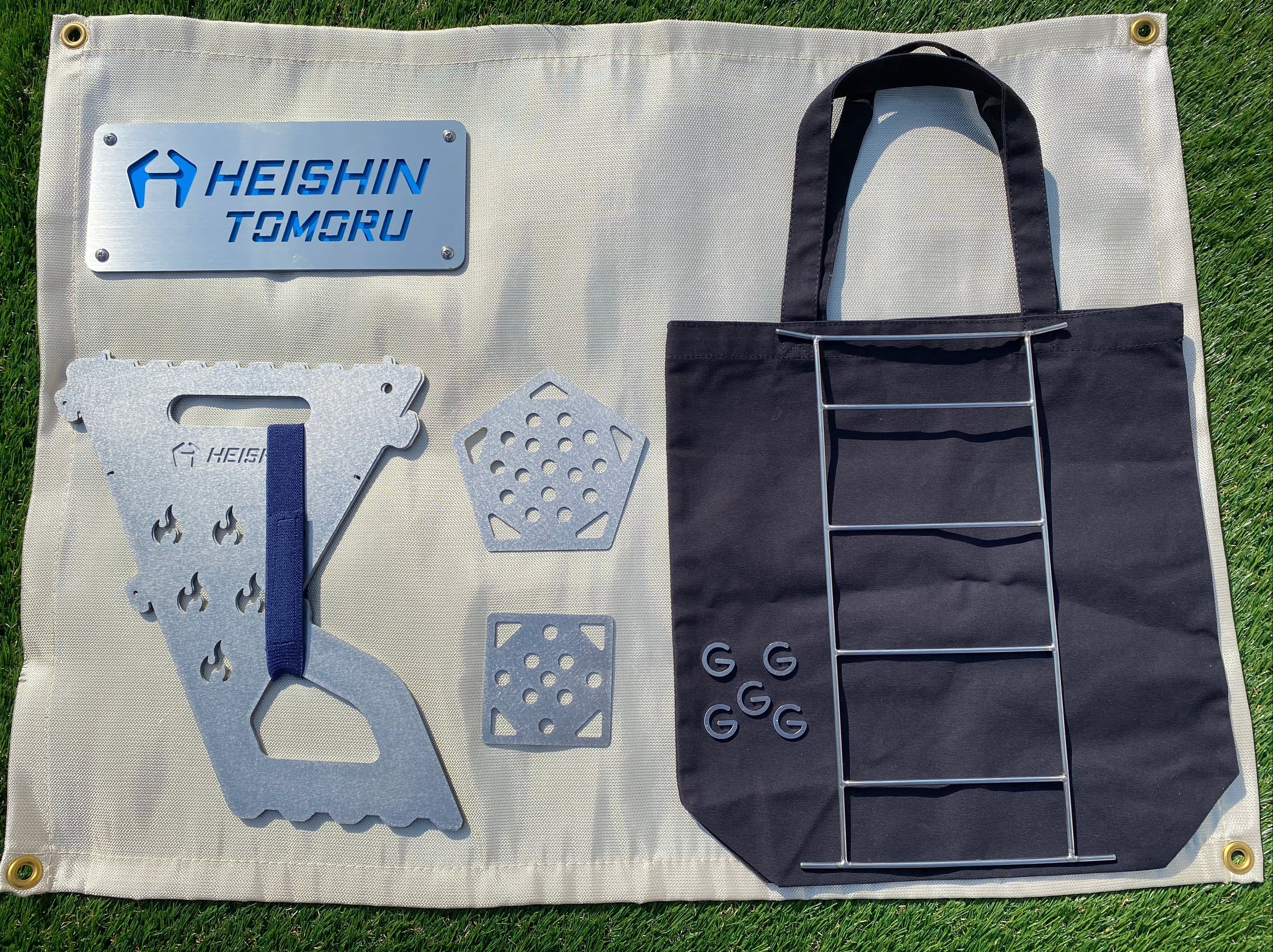 ・収納袋 ・五徳 ・底板 2枚(4角・5角対応可・3角の物は付属無)(軍手)