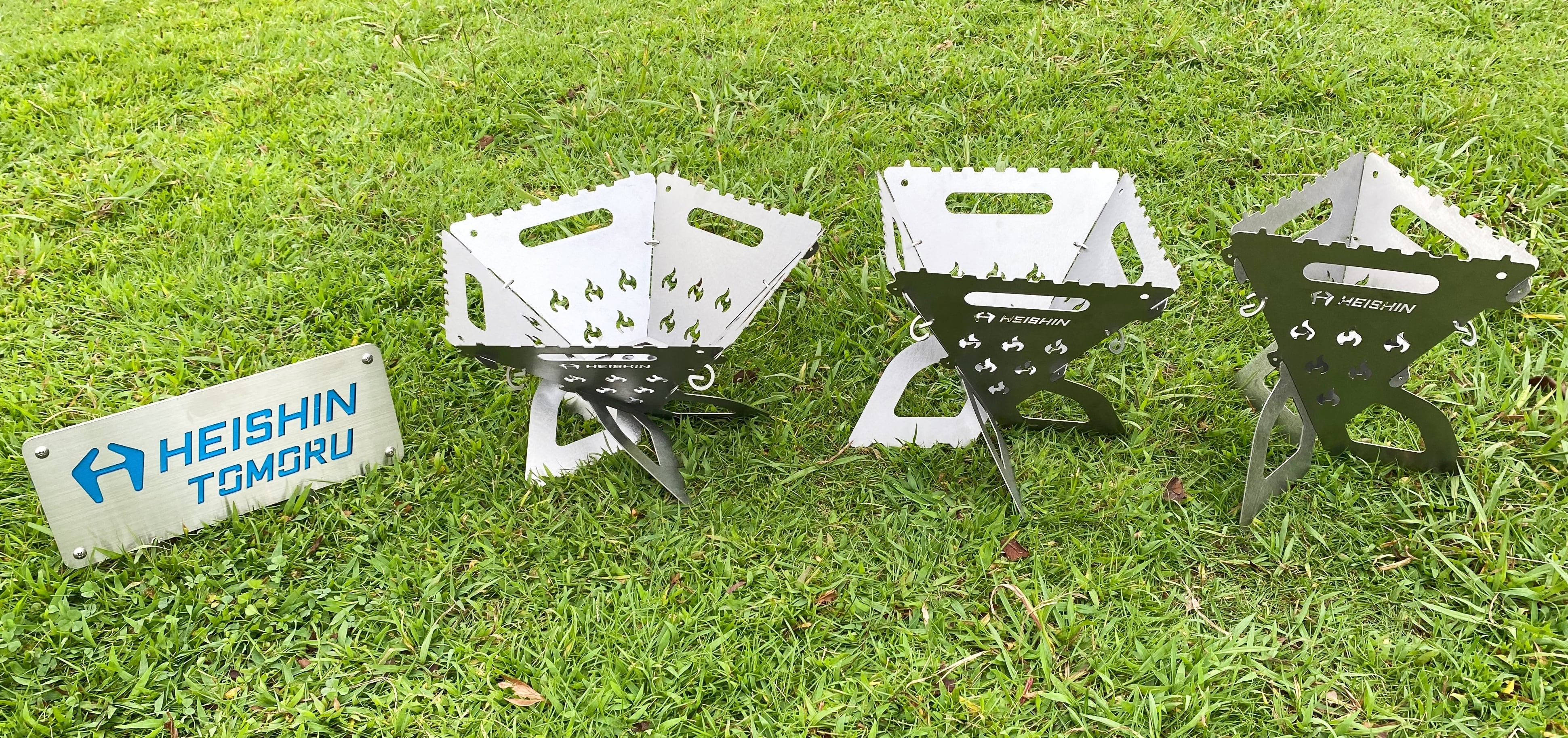 ※焚き火台には大小のサイズとデザイン丸と炎の4種があります