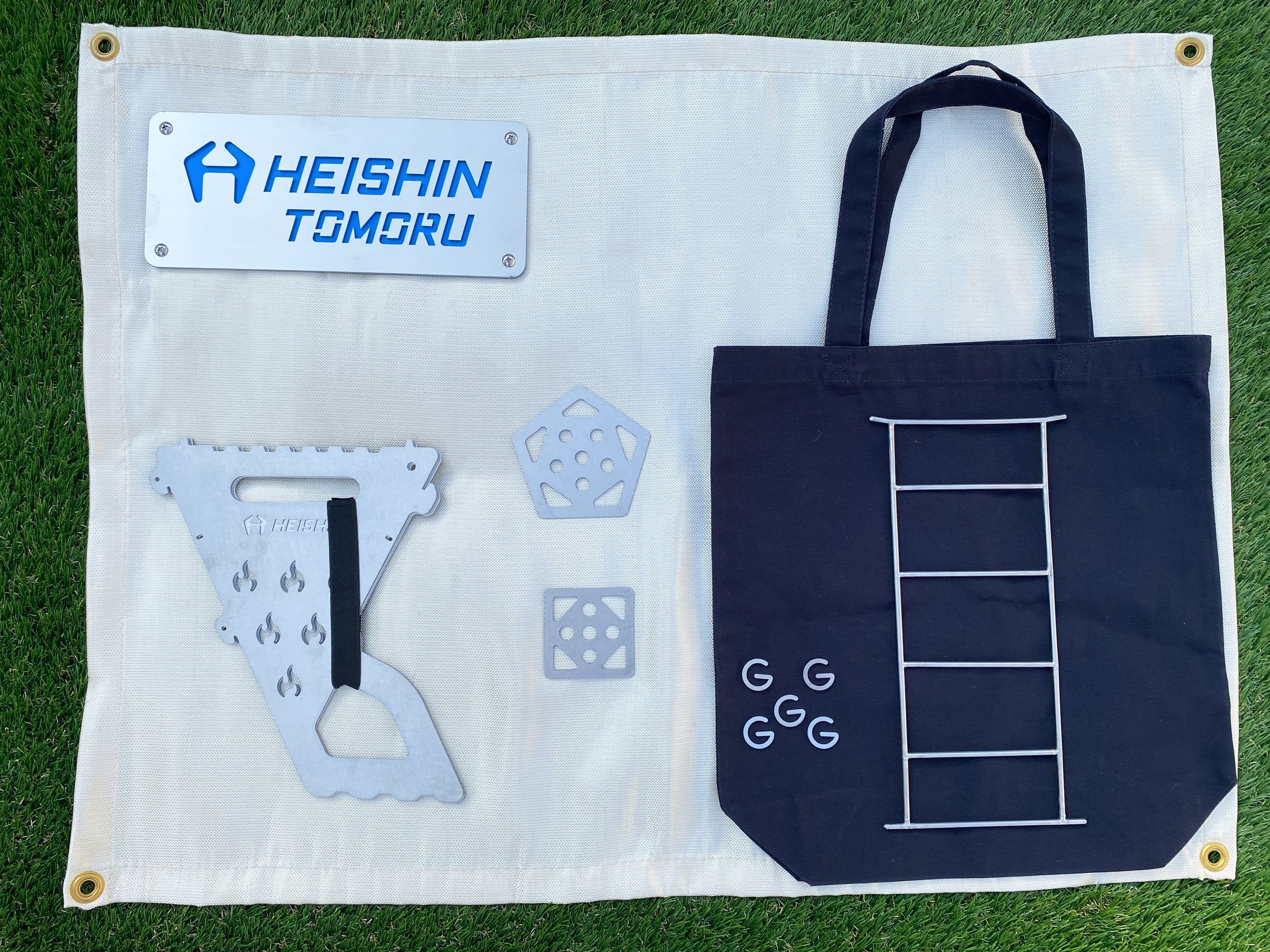 ・収納袋 ・五徳 ・底板 2枚(4角・5角対応可・3角の物は付属無)(軍手)