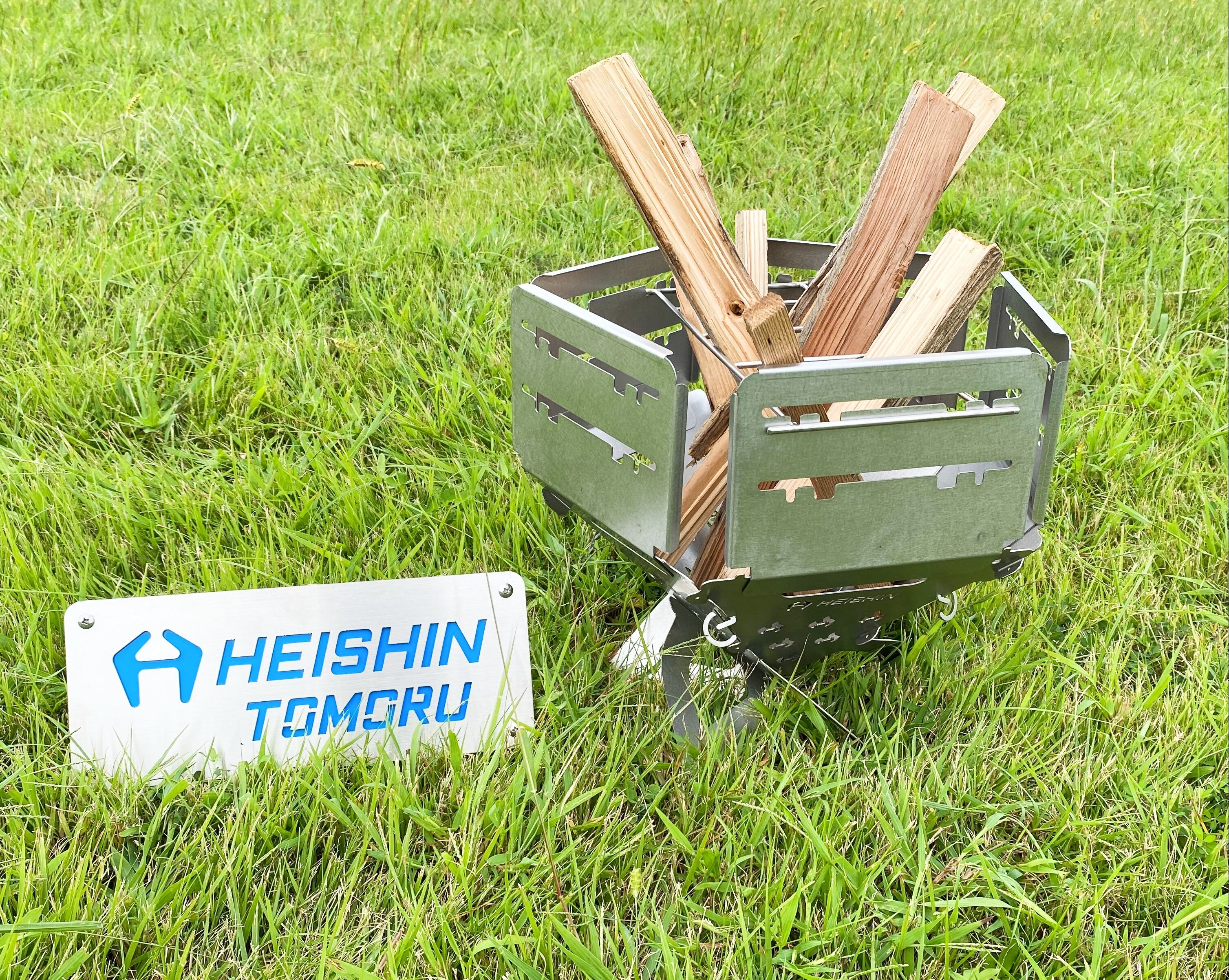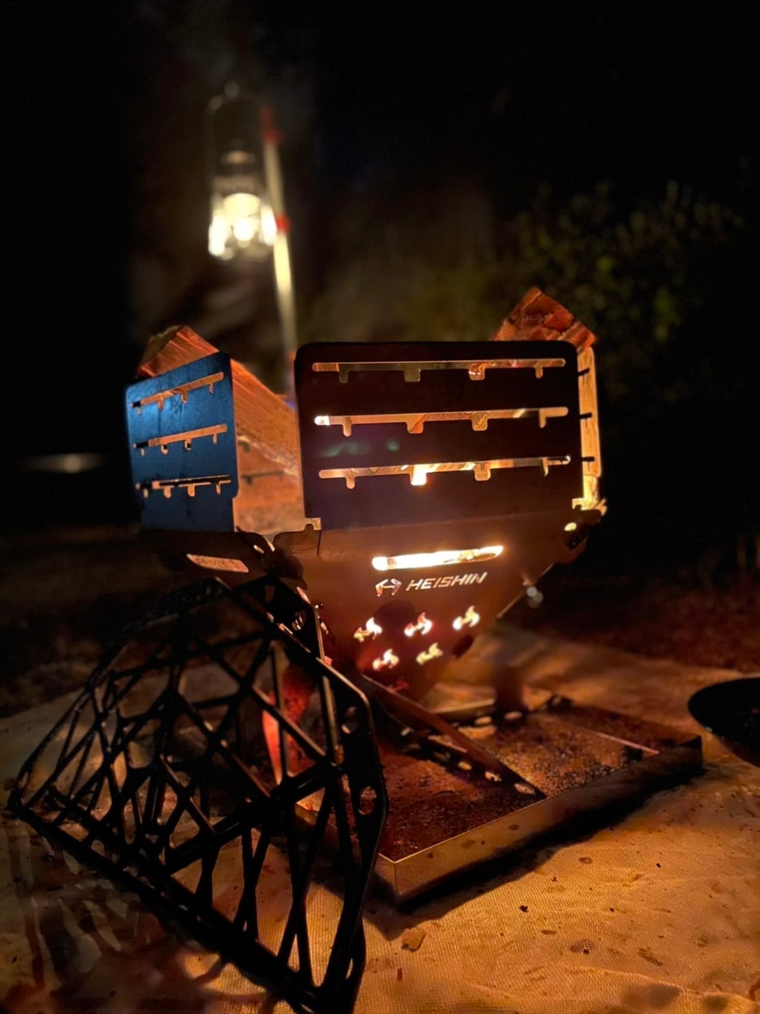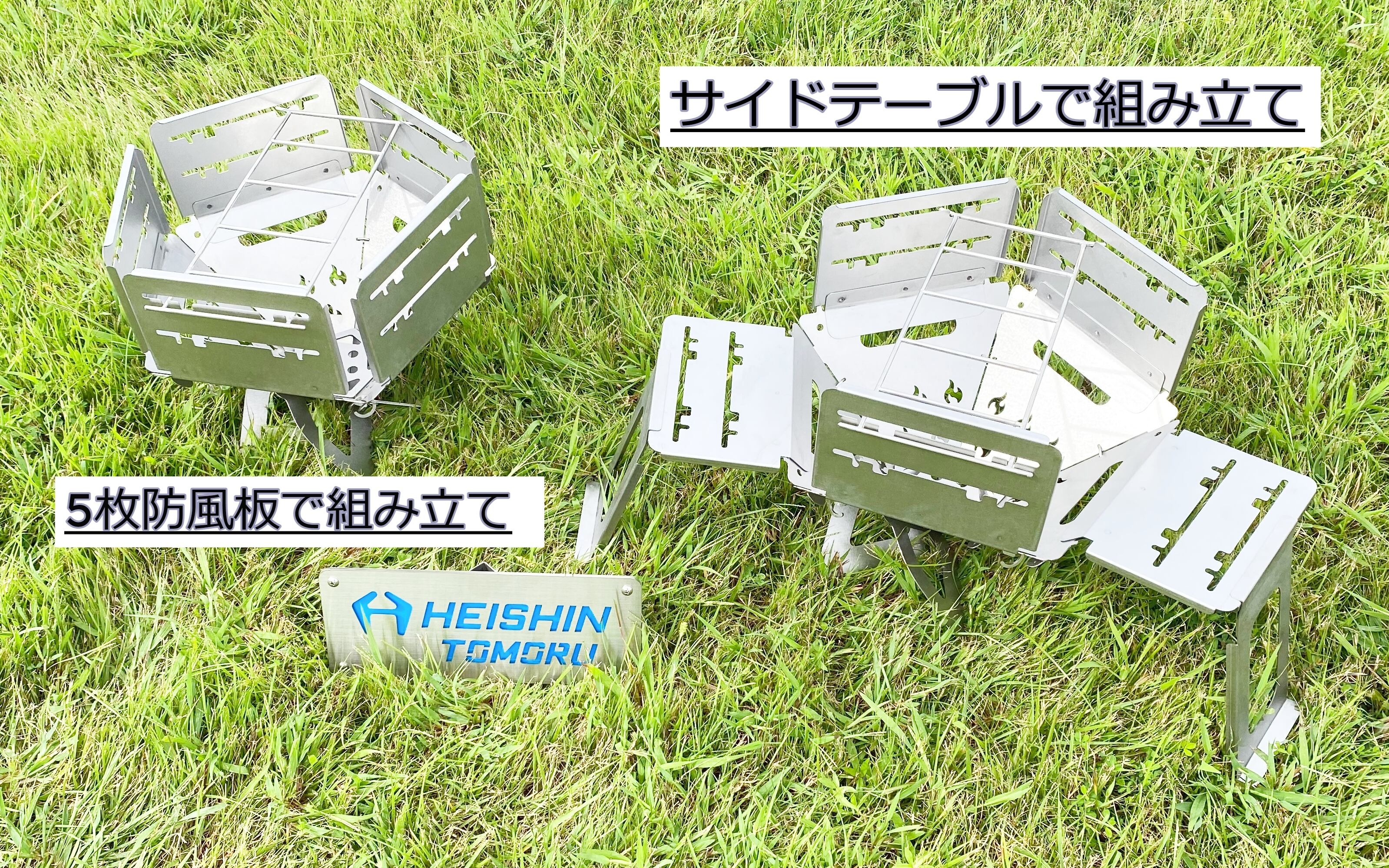 ・風防板がセットでついていますので、焚火だけではなく調理等の使用方法の幅が広がります。風防板を横につけて使用することでサイドテーブルにもなります。