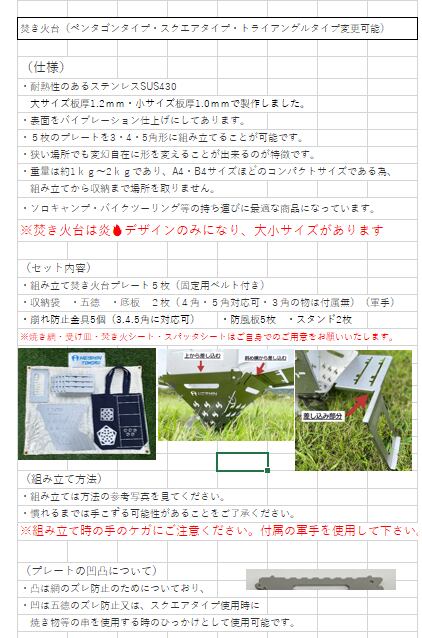 ・焚火台は5枚のプレートを3・4・5角形に組み立てることが可能です。