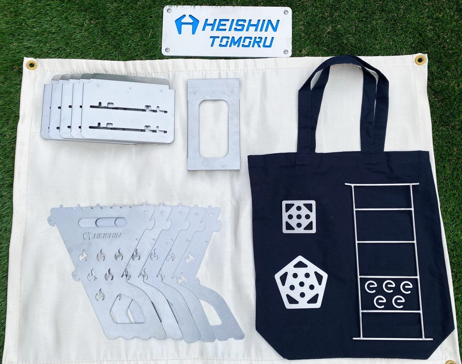 ・組み立て焚き火台プレート5枚(固定用ベルト付き)